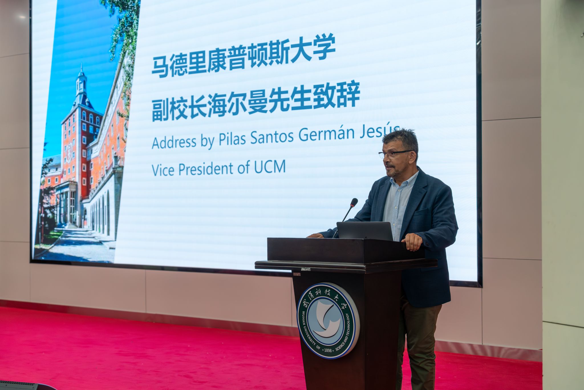 马腾在座谈交流时表示,马德里康普顿斯学院今年首批招生工作实现“开门红”,生源数量和质量实现“量质齐生”。期待双方稳步拓展本科教育项目,在研究生联合培养、科研平台共建、师生互访交流、重大课题联合攻关等方面进一步深化合作,积极构建全方位、多层次的合作格局,助力双方事业高质量发展。