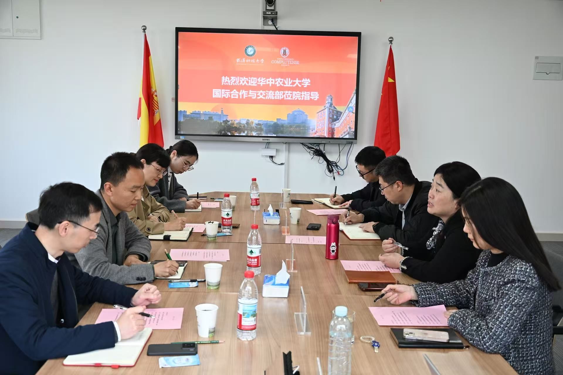 座谈会上,双方围绕对西班牙高校合作展开深入交流。据悉,华中农业大学正积极推进与西班牙高校的合作事宜,我院作为与西班牙康普顿斯大学合作办学的重要平台,拥有丰富的合作经验。双方就合作过程中的经验做法、现存问题及推进路径充分交换意见,分享了各自在对接西班牙高校、开展合作项目中的实践心得。